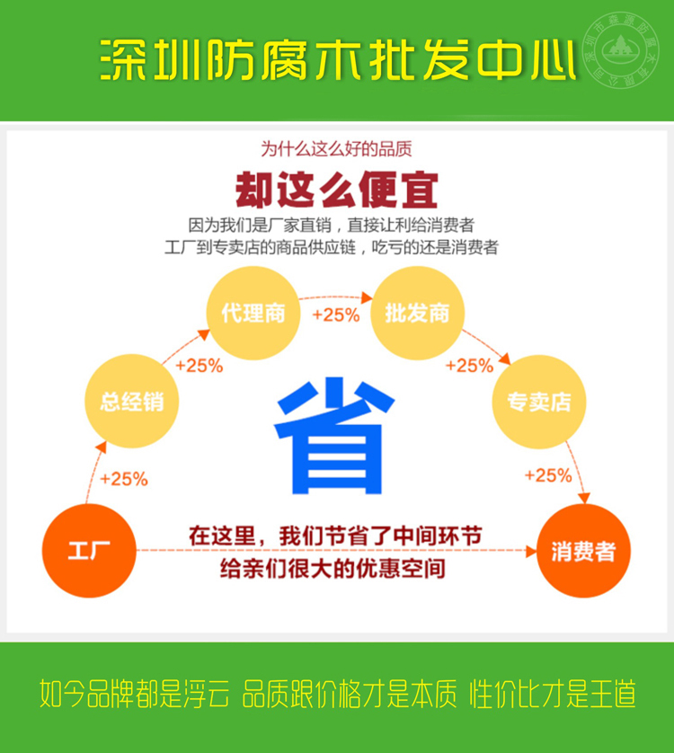 电话:0755-28393575 手机:18680302810 E-mail:363879354@qq.com 联系人:吴生 地址:广东省深圳市龙岗区百富城建材市场二区(森源防腐木)